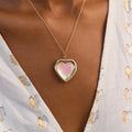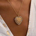 A sweet vintage heart-shaped locket from the mid 20th century. Made from 14k yellow gold, an interior heart is seen with the words "MY SWEET" underneath. Set around the exterior are 30 creamy pearls.